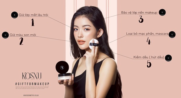 Với phấn phủ kim cương Kosxu, bạn sẽ sử dụng sau lớp cushion hoặc lớp kem chống nắng nếu chỉ cần makeup đơn giản. Đặc biệt, với các chuyên viên trang điểm thì dùng để set lại lớp nền giúp bảo vệ lớp nền mềm mịn hơn.
